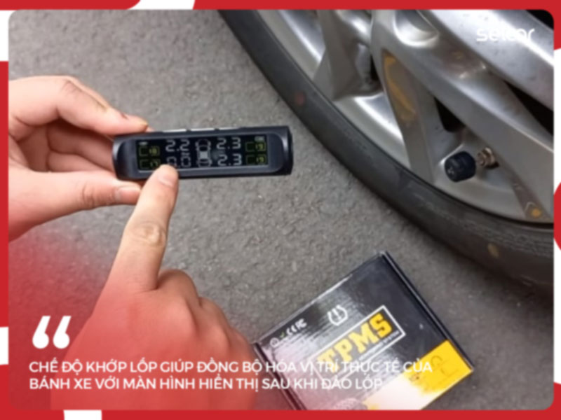 Trong quá trình sử dụng, khi bạn thực hiện đảo lốp định kỳ để lốp mòn đều, vị trí cảm biến sẽ bị xáo trộn. Ví dụ van Trước Trái nay đã chuyển xuống Sau Trái. Lúc này bạn cần thực hiện thao tác khớp lốp hay còn gọi là đảo lốp điện tử trên màn hình.