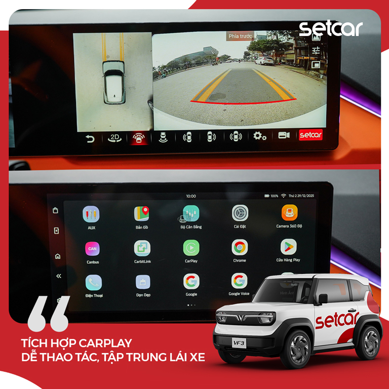 Nếu bạn đang tìm một bộ camera 360 VF3 theo tiêu chí hình ảnh rõ – chạy ổn định – giao diện tiếng Việt – bật cam nhanh – lắp plug & play – bảo hành rõ ràng, thì Camera 360 SetCar là lựa chọn đáng cân nhắc. Đặc biệt với phiên bản VF3 – LimoGreen, gói tặng CarPlay không dây sẽ tăng tiện ích giải trí và dẫn đường khi di chuyển hằng ngày.