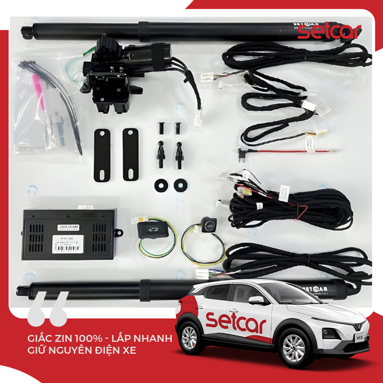Cốp điện VF6 là nâng cấp “dùng mỗi ngày đều thấy tiện”: ty inox 304 bền, độ ồn <40dB êm, mở/đóng bằng chìa zin, và đặc biệt mở được trên màn hình zin VF6, kèm chống kẹt thông minh và đá cốp rảnh tay, lắp plug & play và bảo hành điện tử 2 năm.