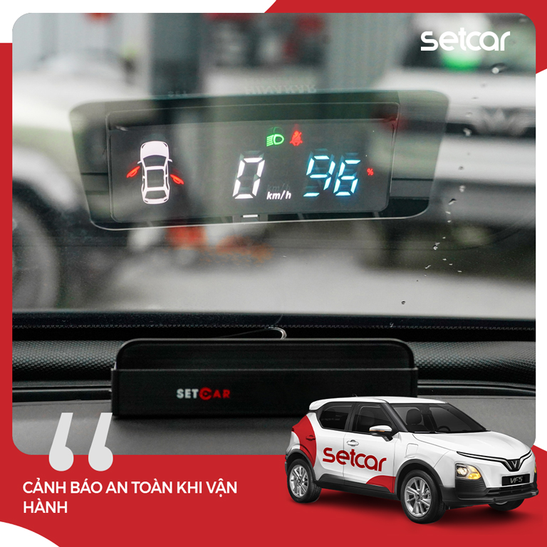 HUD SetCar dành cho VinFast VF5 được thiết kế để hiển thị những thông tin tối ưu cho xe điện: rõ ràng, gọn và dễ đọc. Điểm nổi bật của sản phẩm là khả năng hiển thị tốc độ thường trực với độ chính xác 100% so với ODO trên màn hình zin, giúp người lái yên tâm về độ khớp dữ liệu trong suốt quá trình sử dụng. Bên cạnh đó, HUD còn tích hợp các cảnh báo quan trọng như pin yếu dưới 30%, ắc quy 12V yếu, cửa mở, dây an toàn, cùng các thông tin hỗ trợ vận hành như chế độ lái Eco/Comfort/Sportmô phỏng xe để quan sát trực quan hơn.